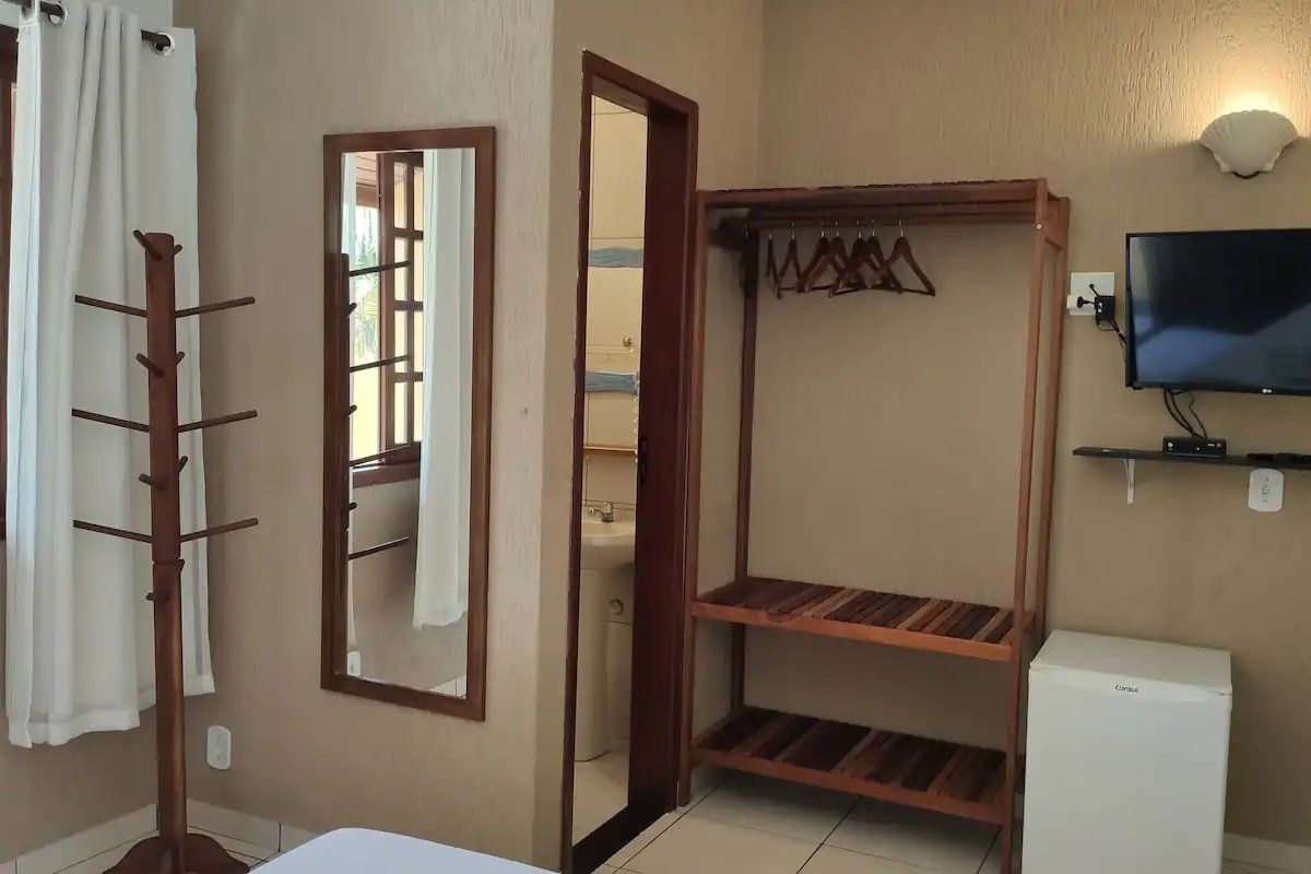 Confortáveis suítes equipadas com: ar condicionado, cama de casal, TV a cabo, frigobar, varal para roupas, mesa com cadeiras externas e secador de cabelo. Localizado no andar térreo.