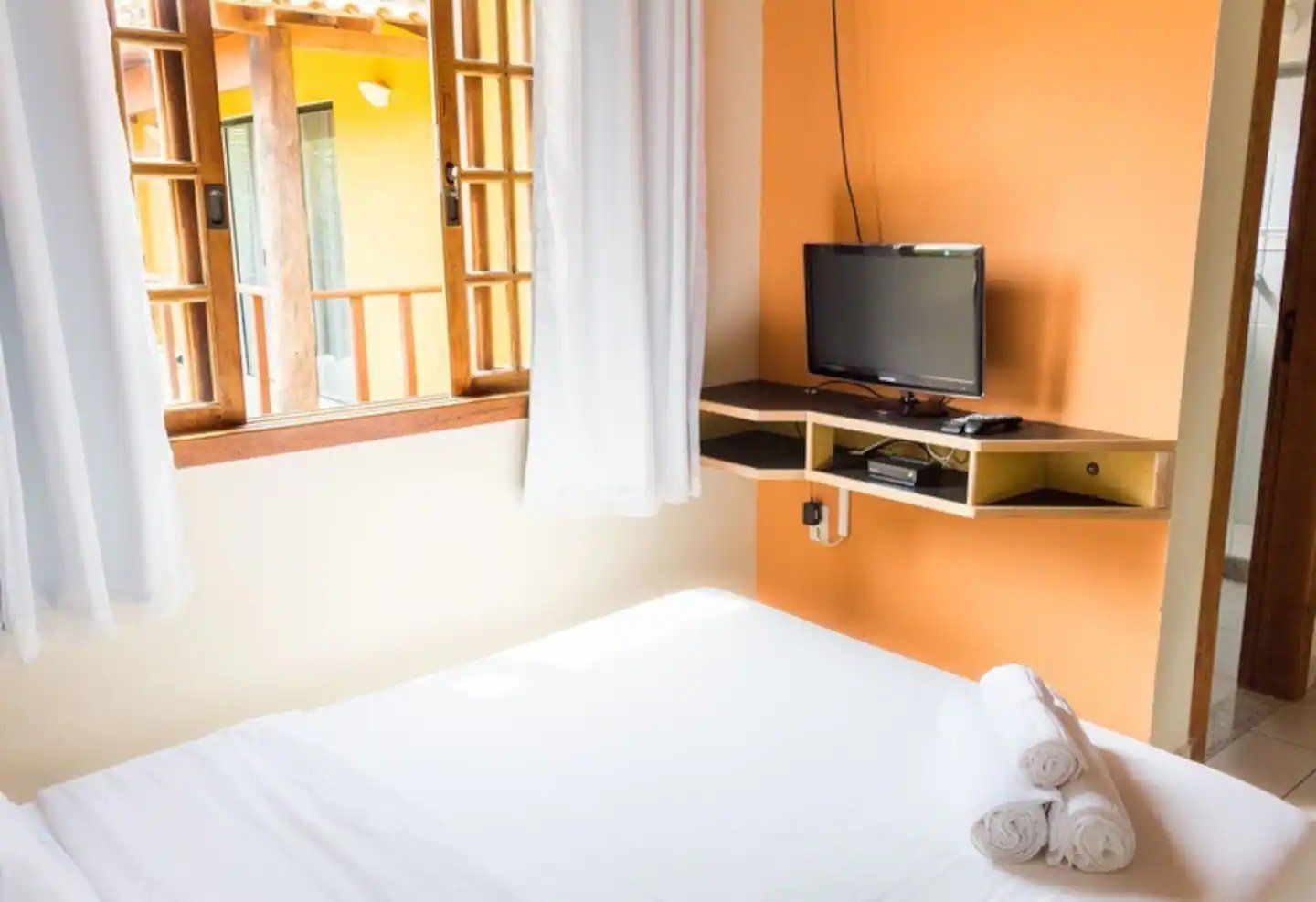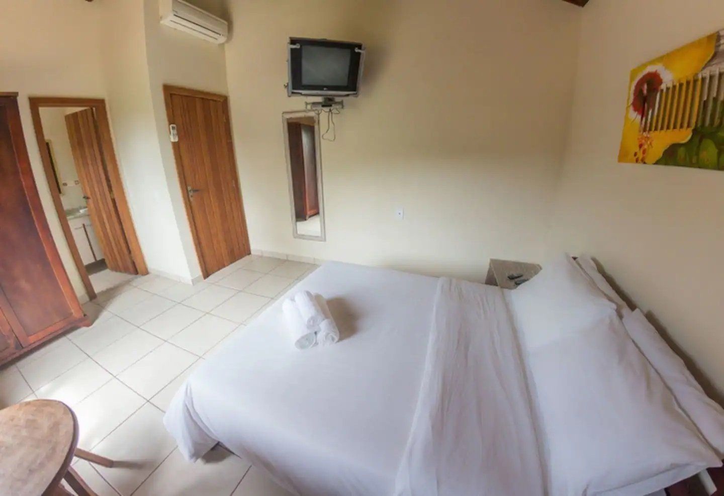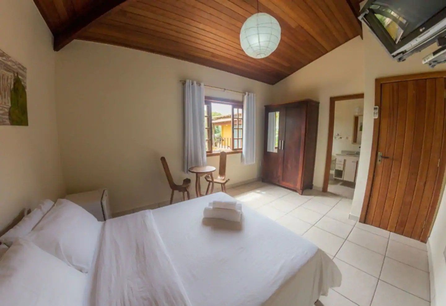 Confortáveis suítes equipadas com: ar condicionado, cama casal, TV a cabo, frigobar, varal para roupas, mesa com cadeiras internas e secador de cabelo. Localizados no andar superior.